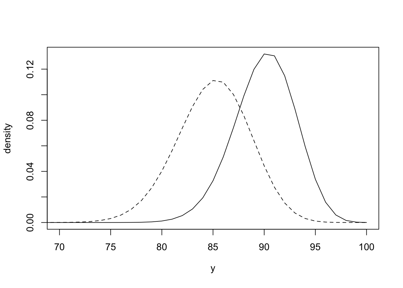 y <- dbinom(a, 100, 0.85)
