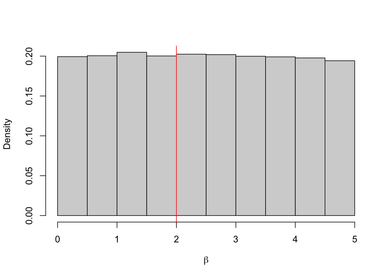 - Sample a value \(\beta^* \sim \text{Unif}[0, 5]\).
