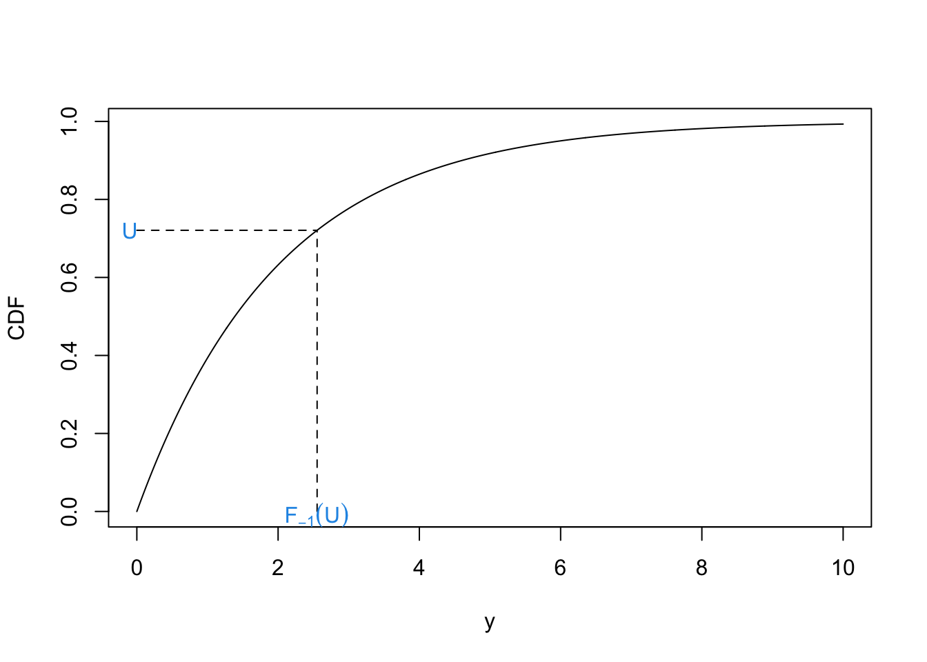 f <- 1 - exp(-0.5*y) #Construct the cumulative density