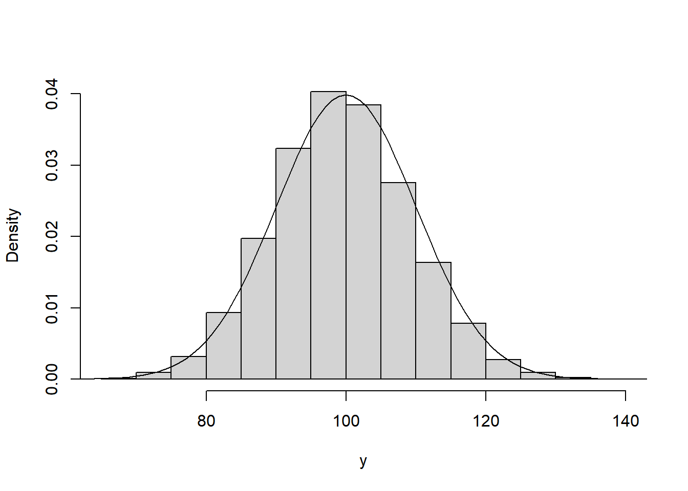 hist(y, freq = FALSE, xlab = "y", main = "")